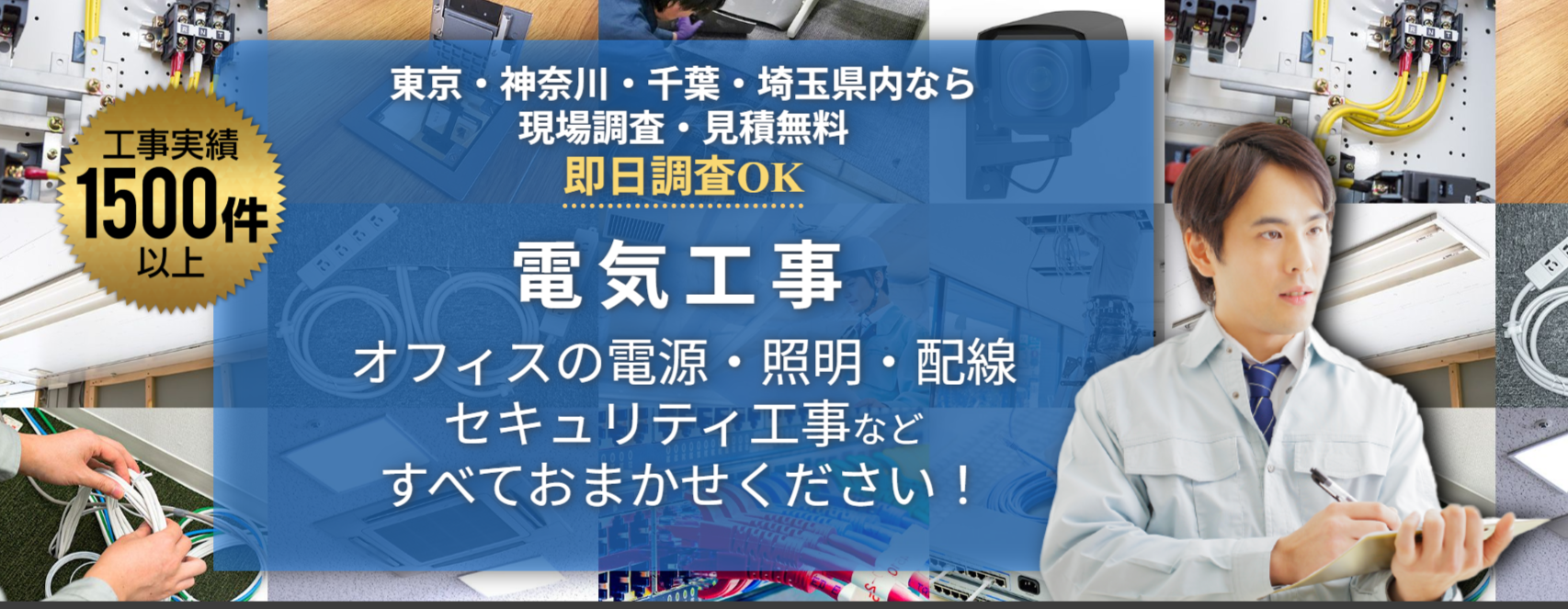 フロアコンセントの導入をご検討中の方は、電気工事士が在籍するオフィスレスキュー119Happyにお任せください。