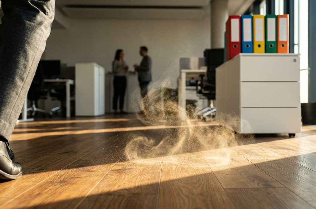 デスクの配置やキャビネットの置き場を見直し、換気の流れを妨げないレイアウトにすることも、長期的な改善につながります。