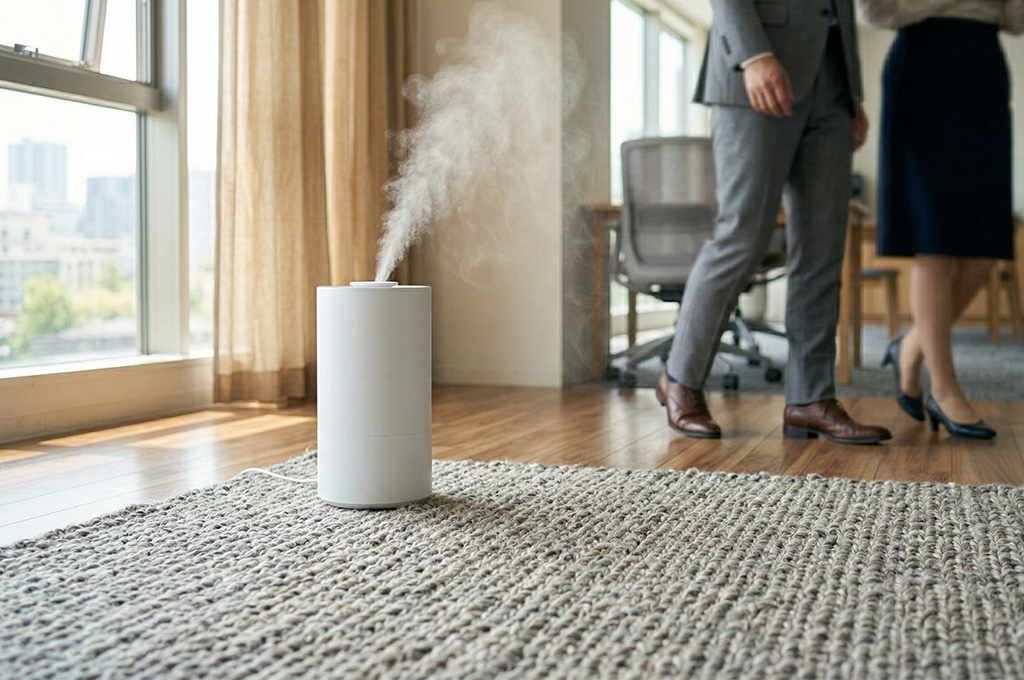 加湿器のフィルターやタンクは定期的な清掃が必要です。衛生管理を怠るとカビや雑菌が繁殖しやすくなるため、管理ルールとセットで導入することをおすすめします。