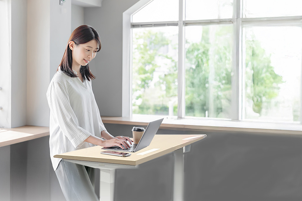 多様な働き方が当たり前になった今、誰にとっても使いやすい昇降デスクは、オフィスづくりの新しいスタンダードになりつつあるのです。
