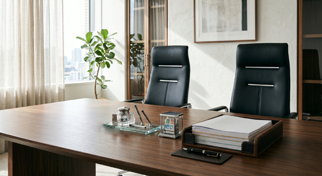 来客用と執務用を使い分けると、空間全体に整った印象が生まれます。相談者への安心感にもつながるでしょう。