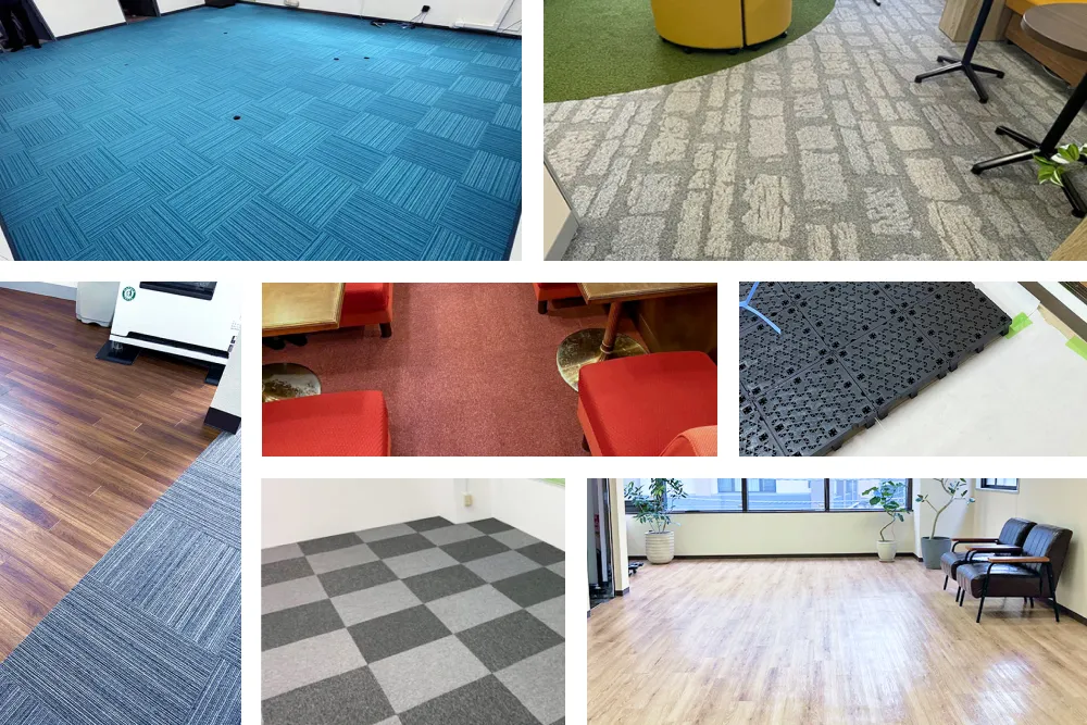 Happyではオフィスで使われるタイルカーペットなど床材の販売だけでなく、これまで多くのオフィスの移転や新規事務所設立時の床工事も行っています。