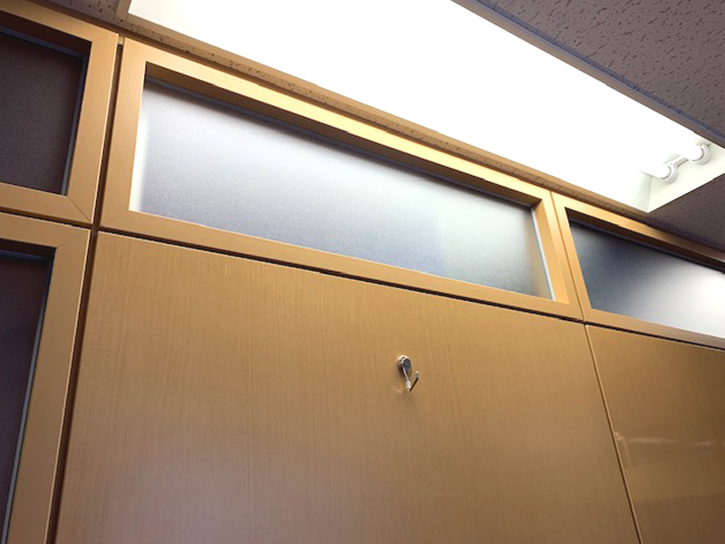- 入口から入った際に散乱した事務所スペースがまる見えの為、目隠しとして設置