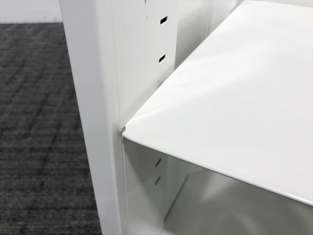 ヘコミ、歪み 書庫やロッカーはスチール家具ですので、多少のヘコミや歪みがある場合があります。 ですが、基本的に側面や背面にあるので、他の書庫と並べたり壁面収納として使えばあまり目立ちません。正面にある場合でも小さなヘコミ、歪みのもののみBランクとしています。